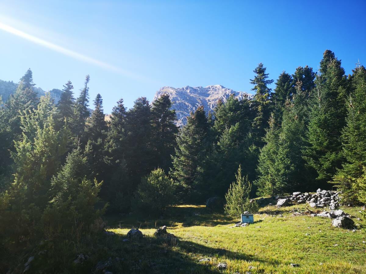 The next morning, we will wake up early and, after having our breakfast in nature, we will begin our ascent to the plateau of Vathia Lakka. During the hike, we will admire the vast fir forest and the impressive peaks. We will gently climb until we emerge completely into an alpine field. As we approach the plateau, one of the most imposing places in Greece, the Pyramid of Giona, will suddenly appear before us. The place has an incredible energy. We will relax on the plateau and, depending on the conditions and the group’s strength, we will start for the summit of Giona. The route to the plateau and back is about 10 kilometers, while to the summit it is an additional 4 kilometers and generally for those with very good physical condition. Then we will return via the same path, have a snack, and get into the van and continue our journey until we once again reach the village of Pavliani, where we will sit in one of the cafés to relax. Afterwards, we will return to Thessaloniki in the late afternoon.